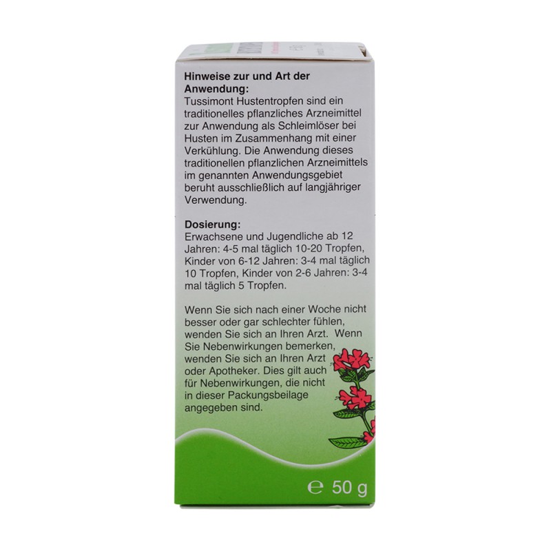 TUSSIMONT® Hustentropfen sind ein traditionelles pflanzliches Arzneimittel zur Anwendung als Schleimlöser bei Husten im Zusammenhang mit einer Verkühlung.