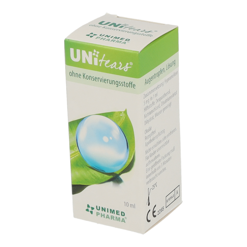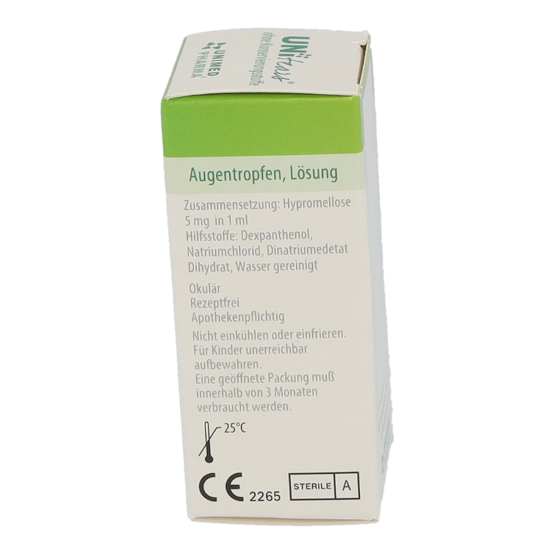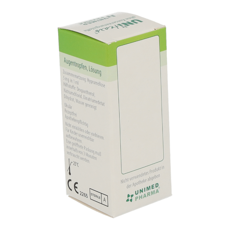 - Befeuchtet die äußere Oberfläche des Auges und dient als Ersatz bei unzureichender Tränenbildung (Syndrom des trockenen Auges)