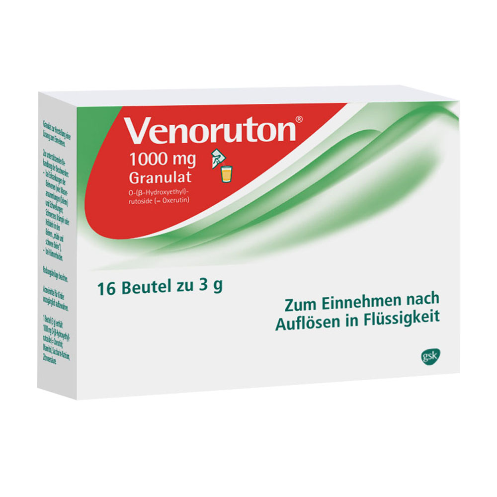 Venoruton 1000 mg Granulat wird zur unterstützenden Behandlung der Beschwerden infolge von Erkrankungen der Beinvenen – u.a. Schmerzen, Krämpfe, Ödeme und schwere Beine – angewendet.