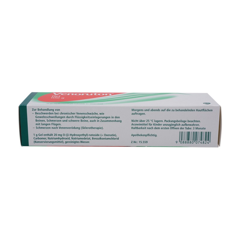 VENORUTON® Gel vermindert die bei Venenleiden krankhaft erhöhte Durchlässigkeit der kleinen Blutgefäße und verbessert gleichzeitig die Fließeigenschaften des Blutes.