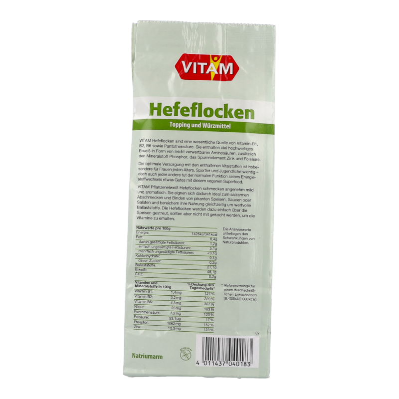 Vitam Edelhefeflocken schmecken angenehm mild und aromatisch. Sie eignen sich dadurch ideal zum salzarmen Abschmecken und Binden von pikanten Speisen, Saucen oder Salaten und bereichern Ihre Nahrung gleichzeitig um wertvolle Ballaststoffe. Die Hefeflocken werden dazu einfach über die Speisen gestreut, sollten aber nicht mit gekocht werden, um die Vitamine zu erhalten..