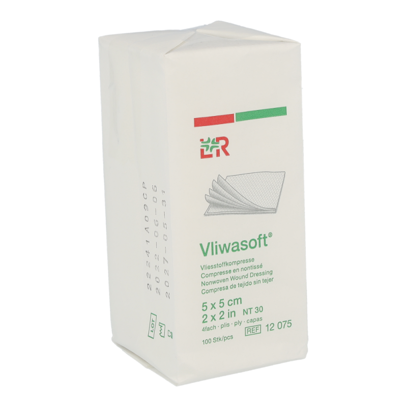 Das nicht fasernde Vlies von Vliwasoft 4-fach unsteril ist sehr saugstark und überzeugt durch seine geringe Verklebungsneigung. Das Sortiment umfasst neben sterilen und unsterilen 4- oder 6-fach gelegten Kompressen die Vliwasoft Schlitzkompressen mit Y-Einschnitt und Stoma-Kompressen.