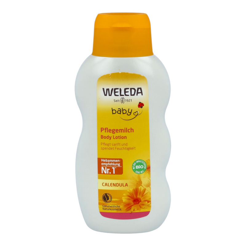 Weleda Pflegemilch Calendula schützt empfindliche Baby- und Kinderhaut ganz natürlich und spendet ihr Feuchtigkeit. Wertvolles Mandelöl aus kontrolliert-biologischem Anbau hält die Haut weich und geschmeidig und schützt vor dem Austrocknen.