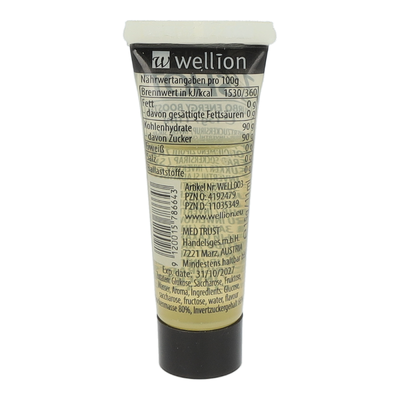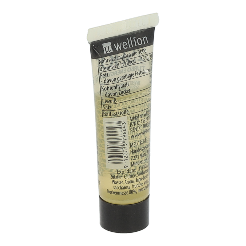 Die Tube ist durch seinen Drehverschluss leicht zu öffnen und kann durch seine kleine Größe bequem überall mitgenommen werden. Durch 3 verschiedene Zuckerarten (Glucose, Saccharose, Fructose) gibt der Wellion 1Shot sofort und über längeren Zeitraum Energie.