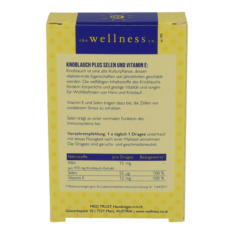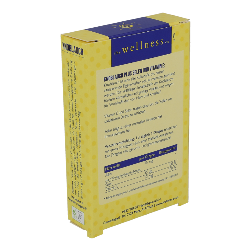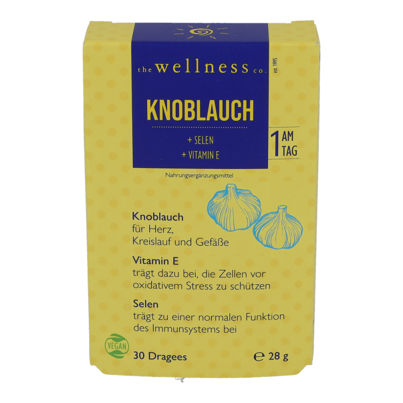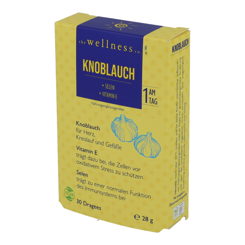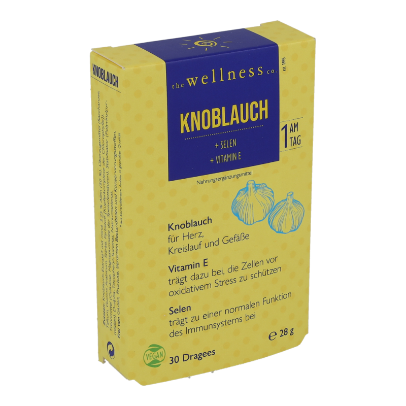 Wellness Knoblauch Dragees mit Vitamin E schützt in Kombination mit Selen – das die normale Funktion des Immunsystems unterstützt – und wie Vitamin E die Zellen vor oxidativem Stress.