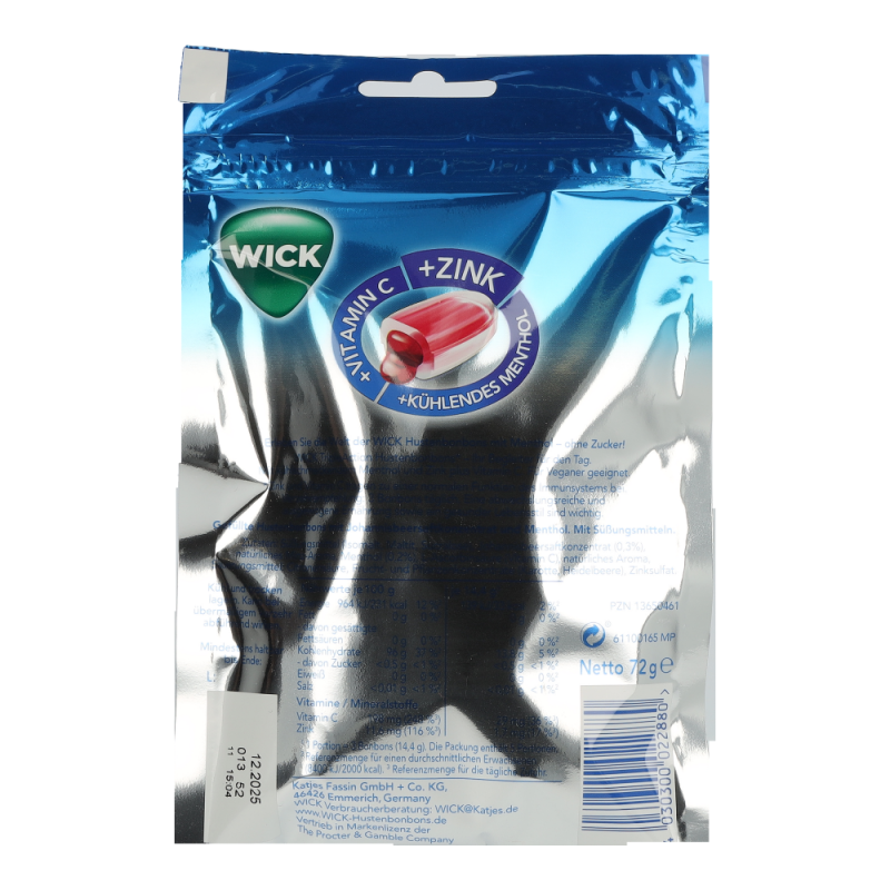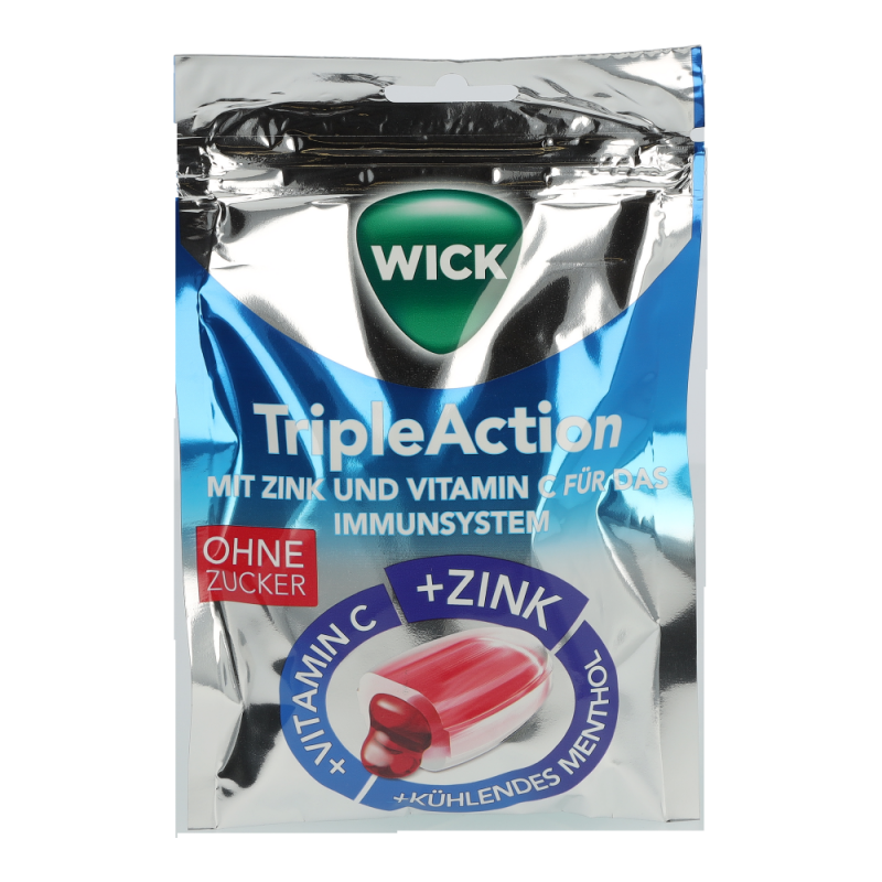 WICK Triple Action mit kühlendem Menthol und feinem Cassis sind wohlschmeckende Hustenbonbons mit einem fruchtigem Sirup-Kern. Der flüssige Kern ist zuckerfrei, beinhaltet Johannisbeersaftkonzentrat und ist dadurch besonders reich an Vitamin C und dem wichtigen Spurenelement Zink – jetzt alle Produkte von WICK zu günstigen Preisen online bestellen!