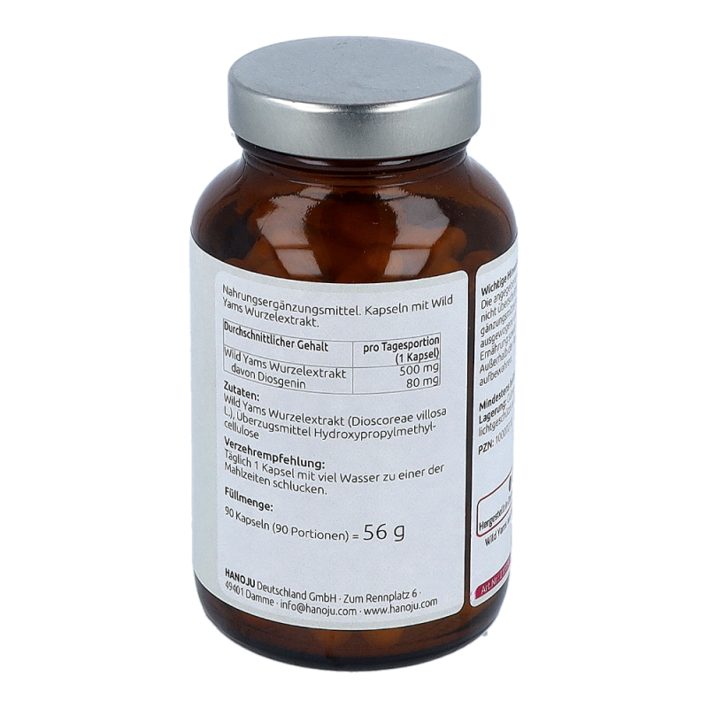 Vier Kapseln enthalten (empfohlene tägliche Verzehrmenge): 2000 mg Radix Dioscorea villosa Extrakt 3.5% (Yams-Wurzel), 400 mg Hydroxypropylmethylcellulose (Kapselhülle).