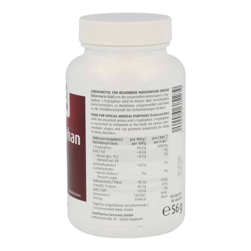 ZeinPharma L-Tryptophan 500 mg Kapseln hilft zum Diätmanagement bei Schlafstörungen. Außerdem versorgen Sie Ihren Körper mit einer lebensnotwendigen Aminosäure. Denn Sie können L-Tryptophan nicht selbst bilden. Im Gegenteil: L-Tryptophan ist eine essentielle Aminosäure, die dem Körper von außen zugeführt werden muss.